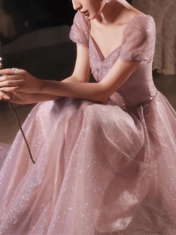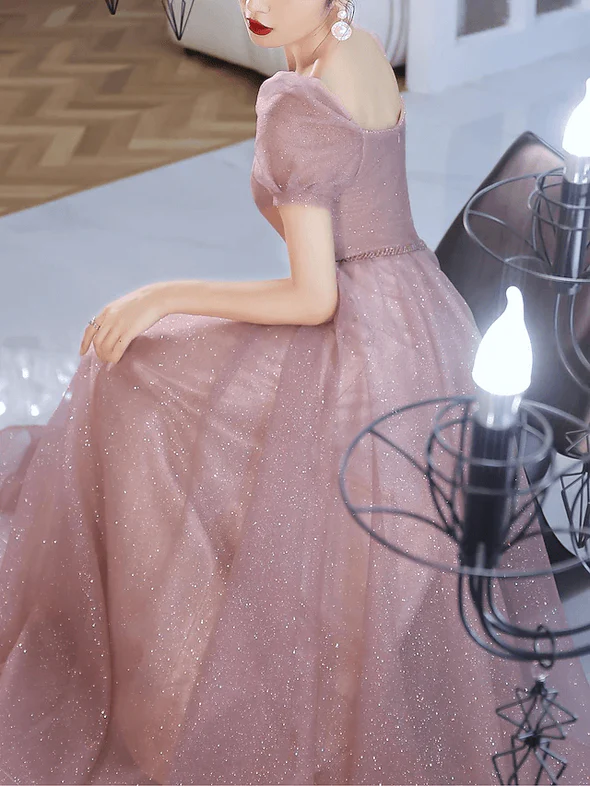 A-Line Beautiful Back Elegant Prom Formal Evening Dress Sweetheart Neckline Short Sleeve Floor Length c2910