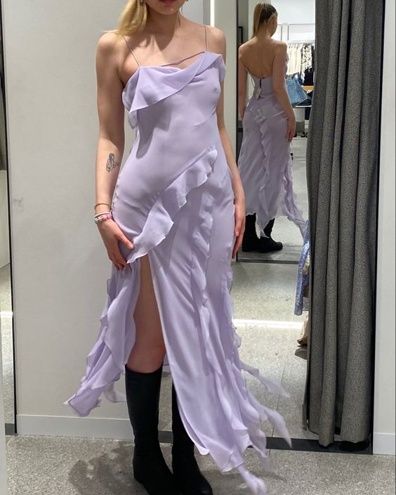 Backless Sleeveless Ruffle Tassel Side Split Irregular Party Dress cc1209