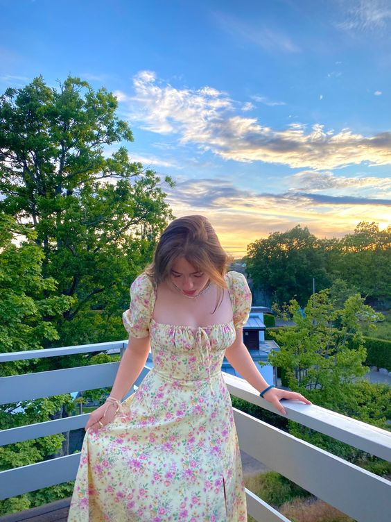 Chic Floral Print Square Neck A-line Party Dress with Elegant Slit cc1255