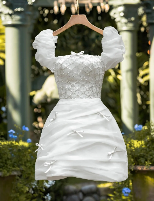 Classy White Square Neck Short Birthday Dress Homecoming Dress cc3255