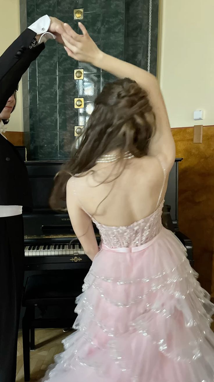 Dreamy Princess Pale Pink Strappy Layered Tulle Ball Gown Evening Dress Sweet 16th Birthday cc4891