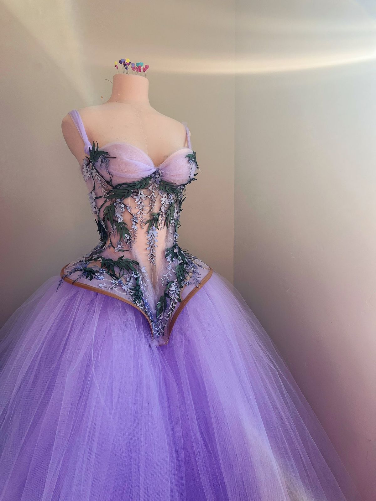 Dreamy Purple Strapless Halter Floral Tulle Long Ball Gown Evening Dress cc4868