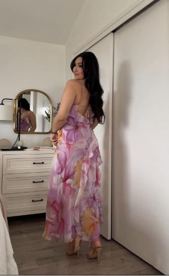 Elegant Chiffon Print Floral Ruffles Evening Dress Formal Party Prom Dress cc2195