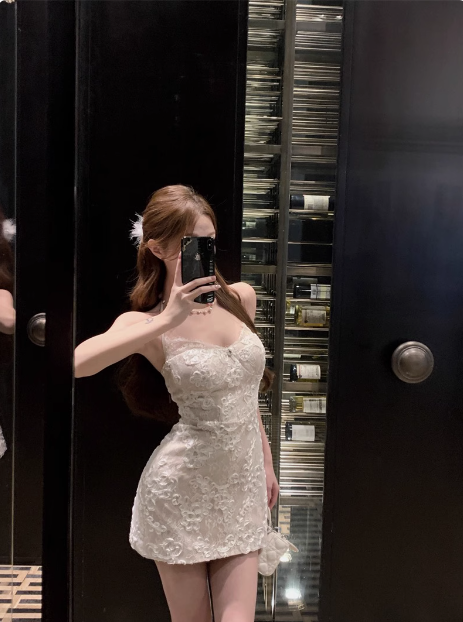 French Lace Halterneck Slim Fit Hip Camisole Homecoming Dress cc3560