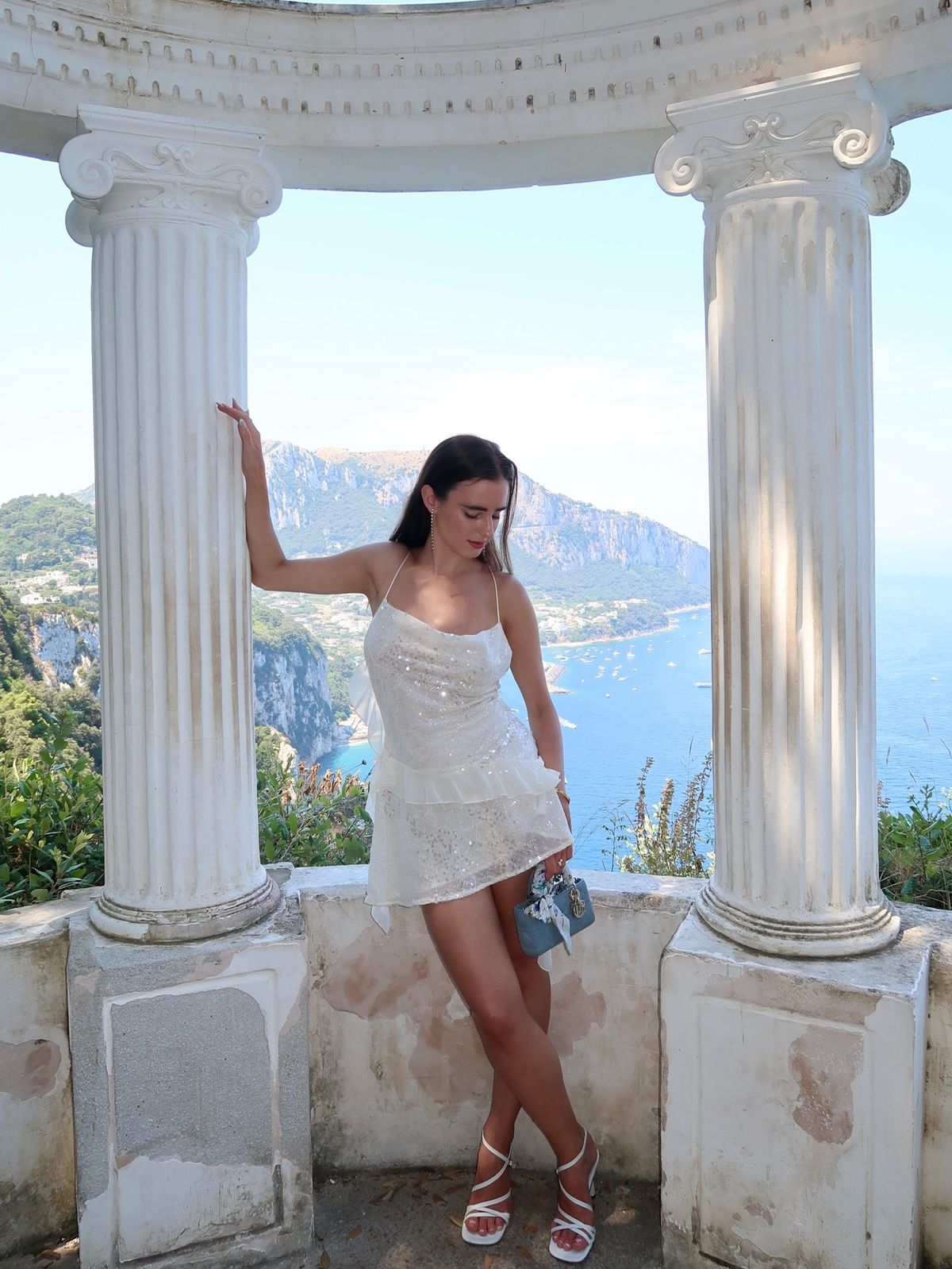 Fresh And Shining White Sequins Slim Irregular Ruffle 17th Birthday Homecoming Dress cc4461