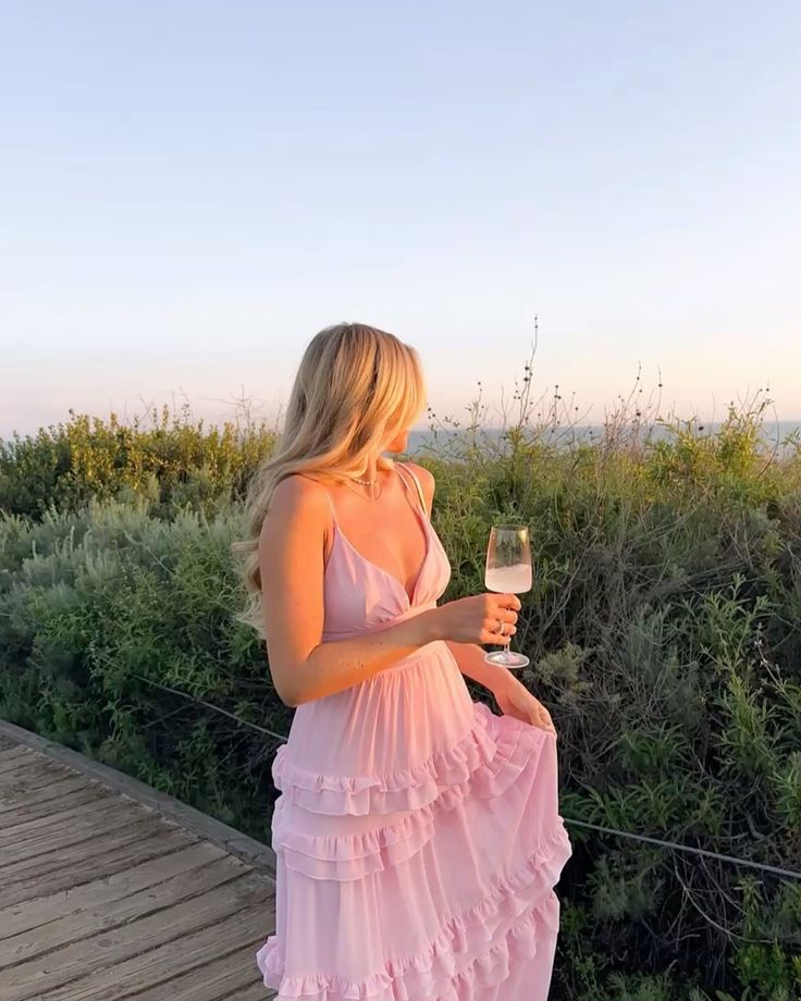 Fresh Light Pink A-line Multi-layered Cake Deep V Sling Ruffle Chiffon Long Prom Dress Evening Dress cc4734