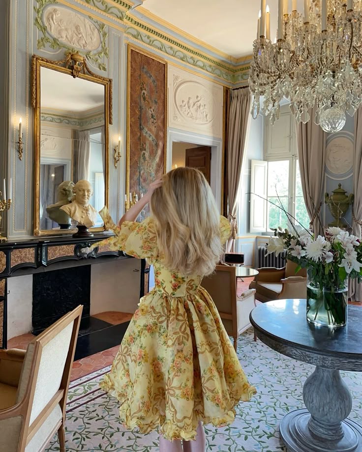 Gorgeous Retro Yellow Floral V-neck Ruffled Puff Sleeve Waist A-line 17th Birthday Homecoming Dress cc4613