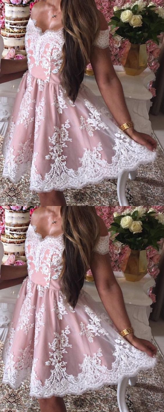 Lace Appliques V-neck Off Shoulder Homecoming Dresses c2998