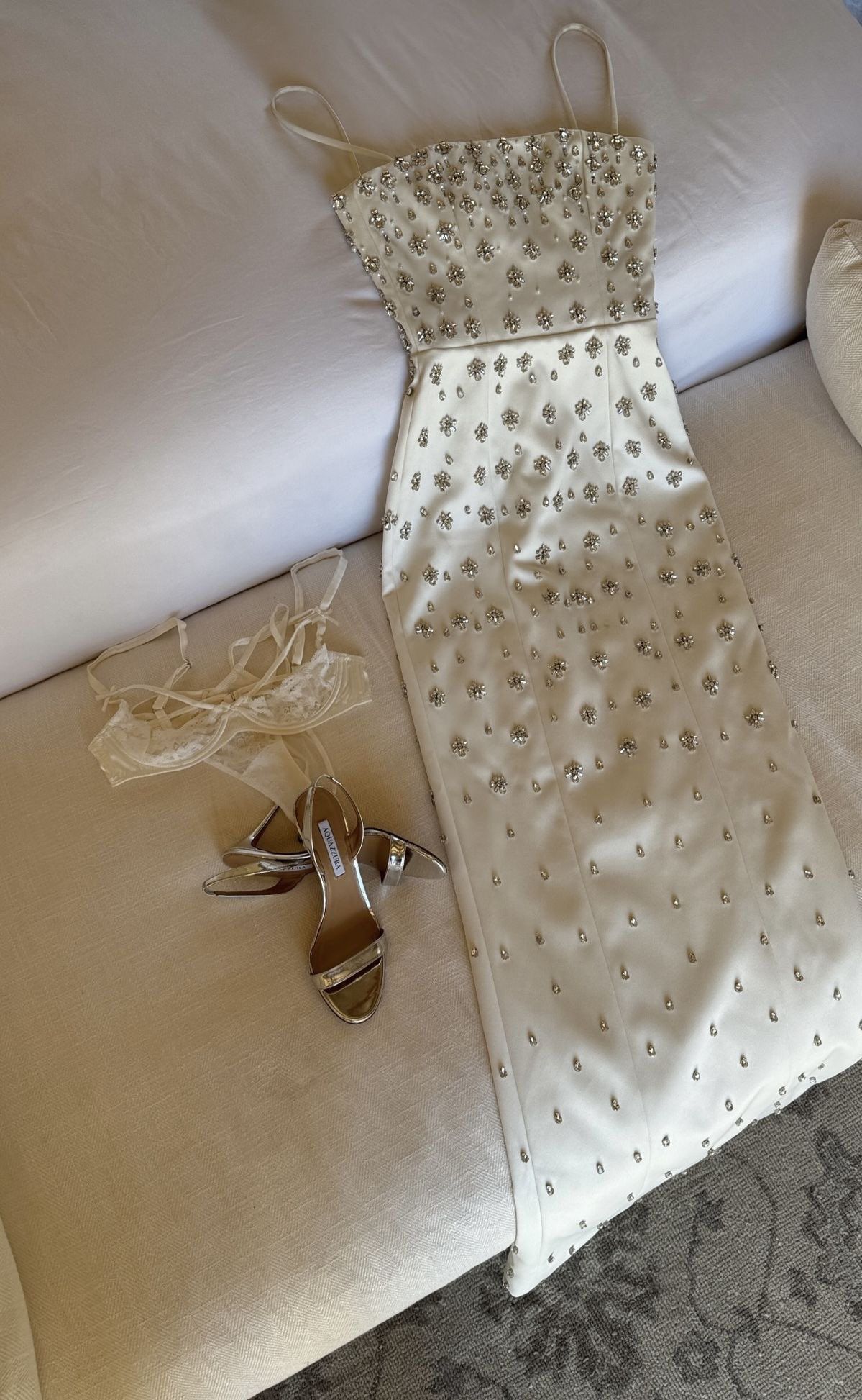 Luxury Ivory Slim Strap Rhinestone Satin Long Prom Dress Evening Dress Bridesmaid Dress cc4810