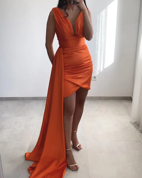 Orange Sheath Plunge Prom Dress Sleeveless Evening Dress c2607