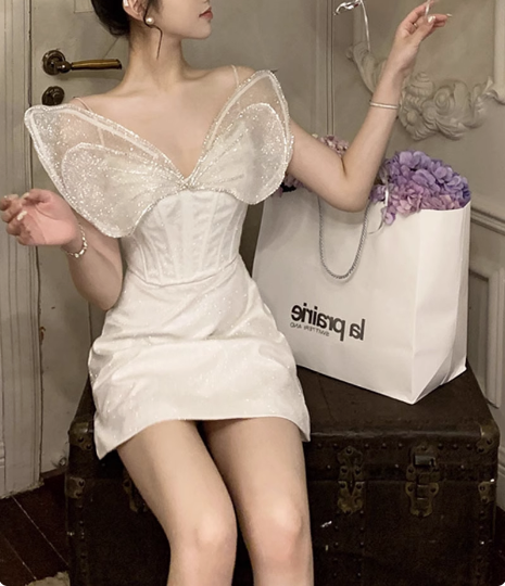 Princess Light Luxury Sling Rhinestone Bow Shiny 17th Birthday Homecoming Dress cc3543