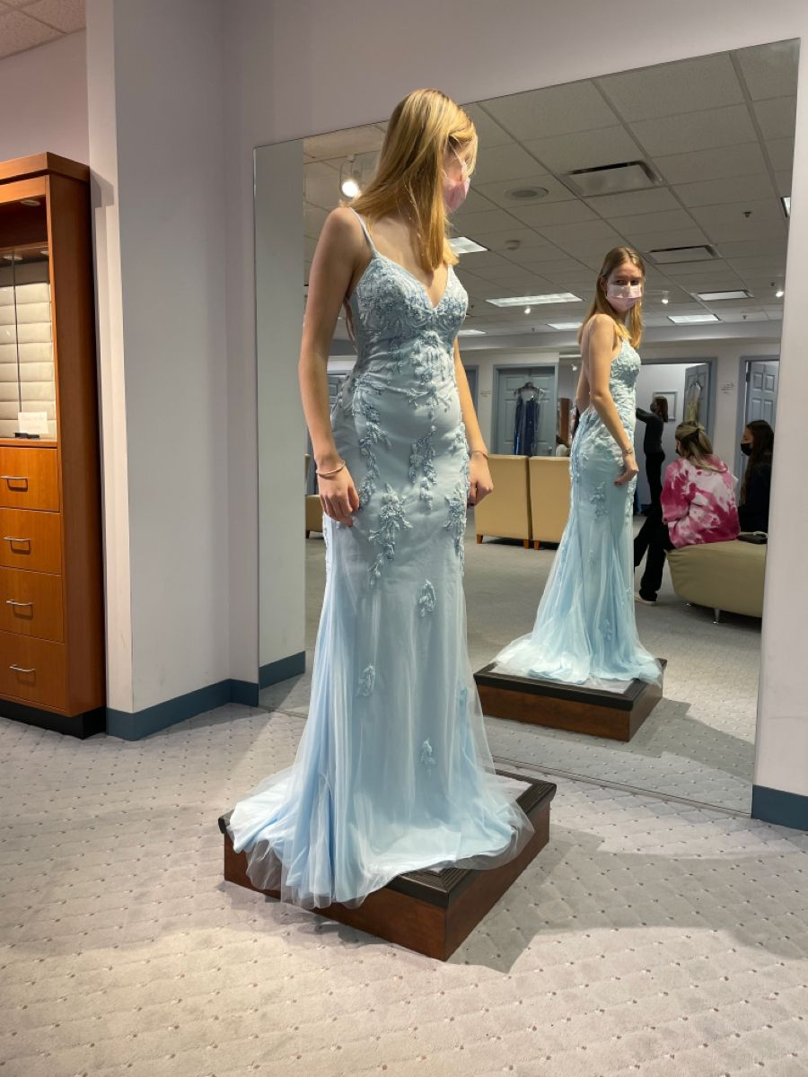 Sexy Mermaid Light Blue Lace Prom Dresses,Light Blue Evening Gown cc533