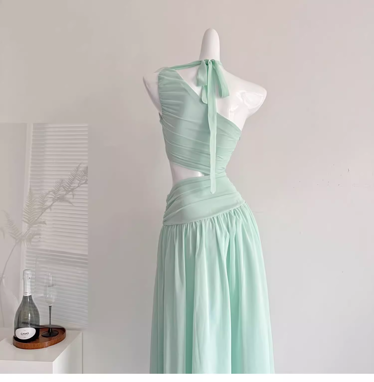 Sexy Mint Green One Shoulder Chiffon Vacation Dress Birthday Dress cc3053