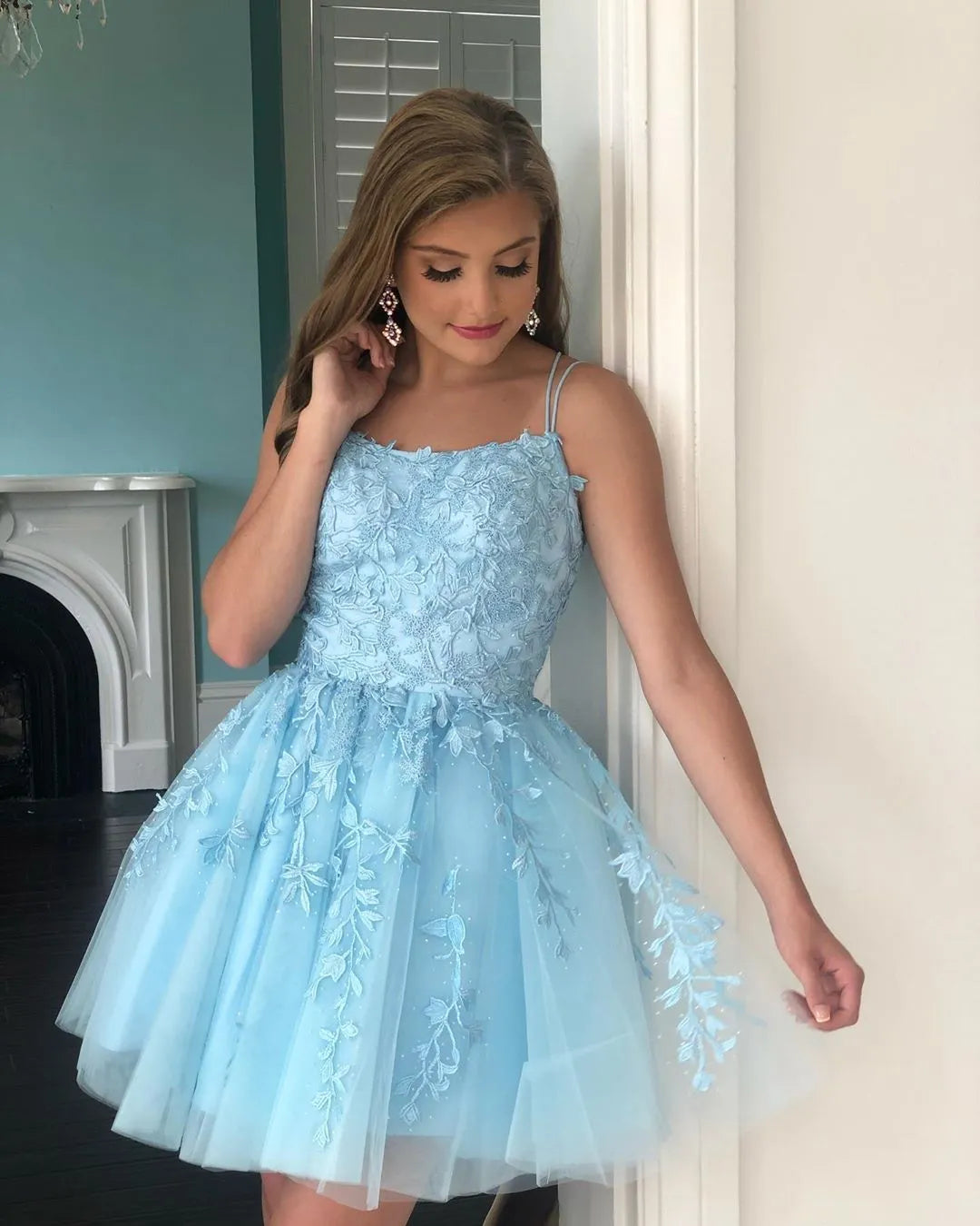 Pretty short A-line yellow homecoming dress with spaghetti straps c2658