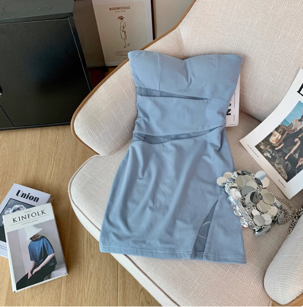 Simple Tube Top See-through Splicing Mesh Hip-wrapped Birthday Skirt Homecoming Dress cc3966