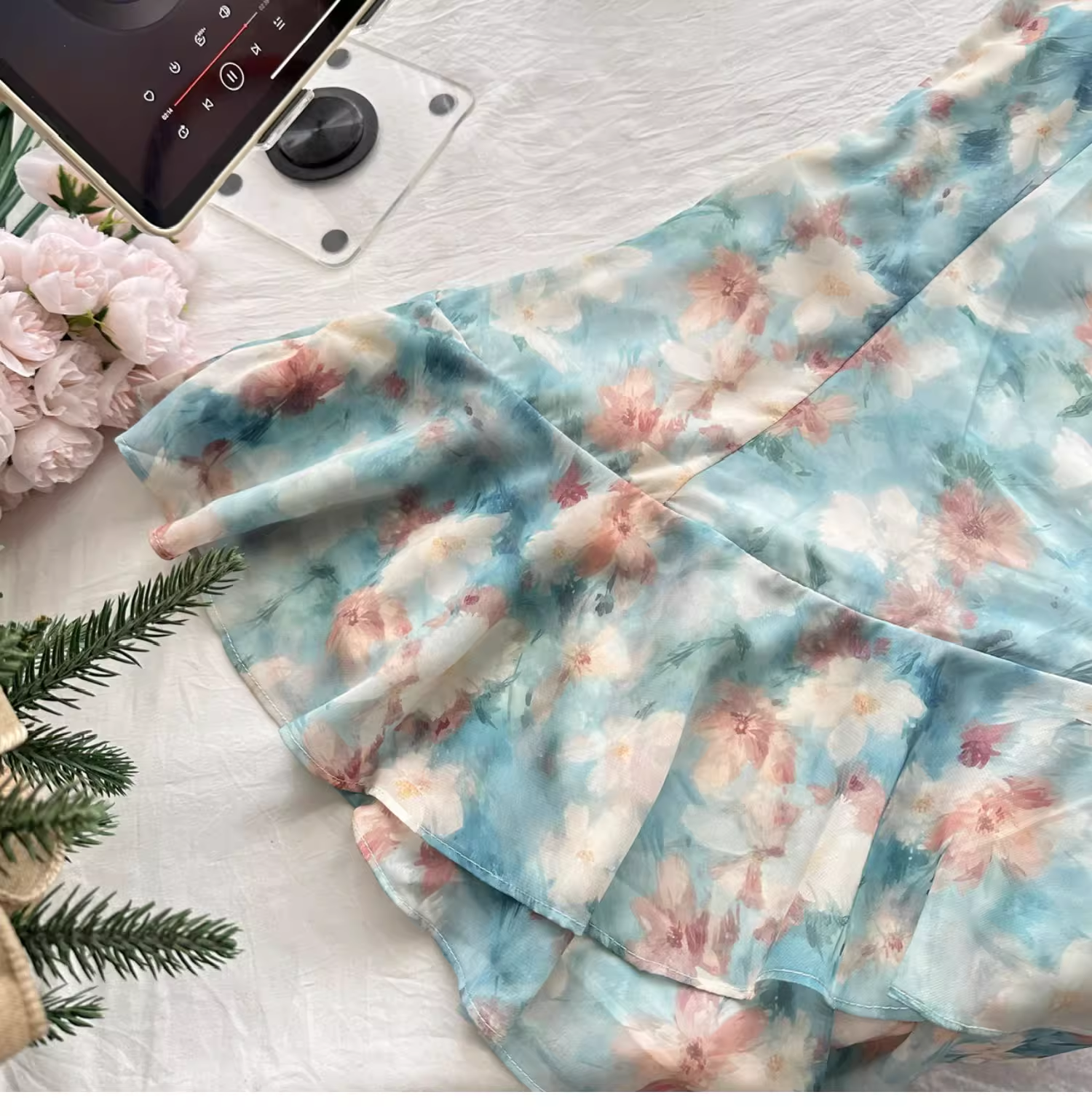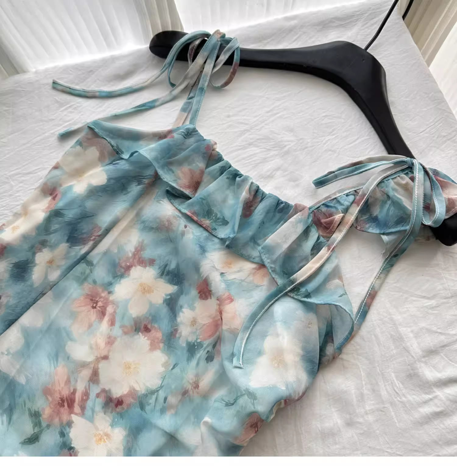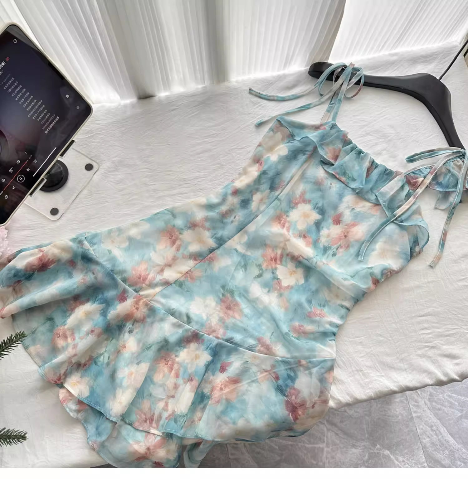 Spaghetti Straps Irregular Ruffles Short Holiday Dress cc3055