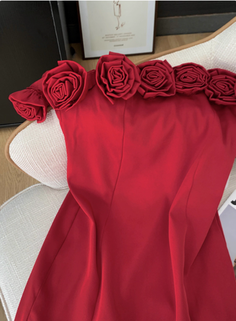 Stunning Red Rose One Shoulder Satin Hip Birthday Short Skirt Homecoming Dress cc3965
