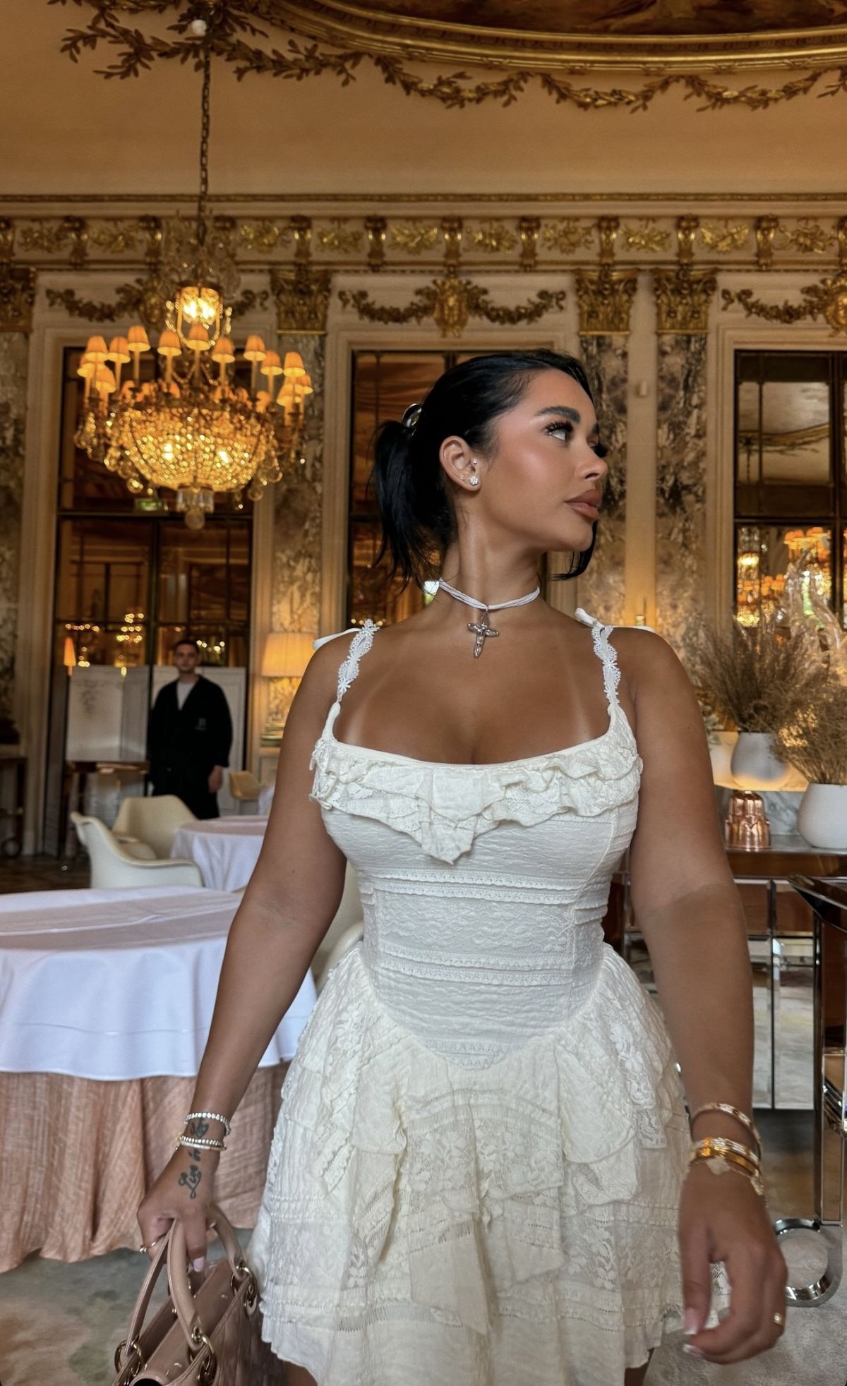 Sweet And Elegant Ivory Square Neck Lace Multi-layered Ruffle A-line Birthday Party Homecoming Dress cc4677