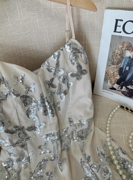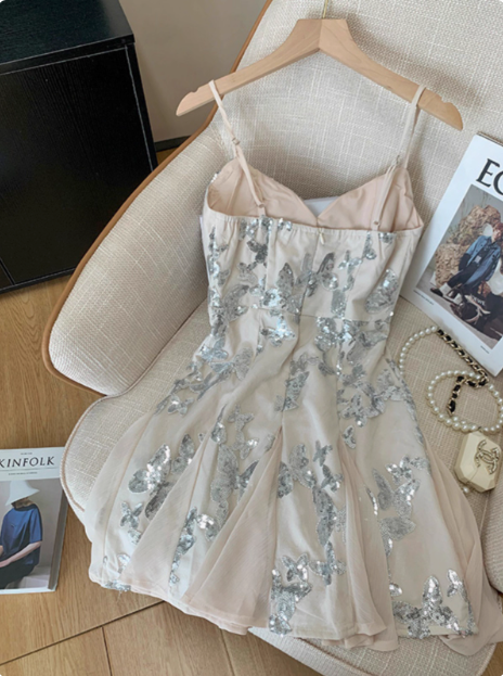 Sweet Butterfly Sequined V-Neck Suspender 17th Birthday Homecoming Dress cc3954