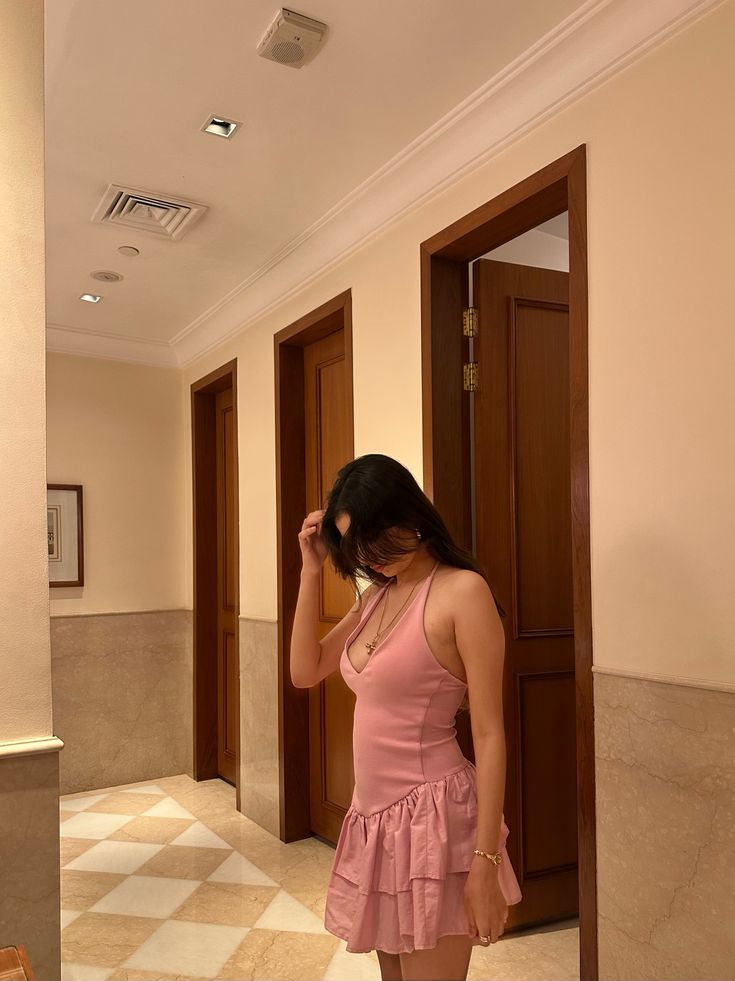 Sweet Pink Halterneck Deep V-neck Ruffled Mini 17th Birthday Homecoming Dress cc4607