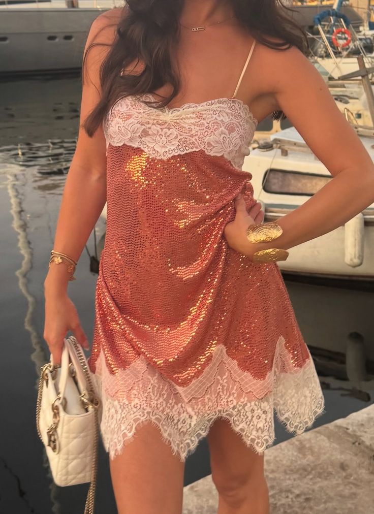 Sweet Pink Spaghetti Strap Sequined Lace Irregular Birthday Party Homecoming Dress cc4431