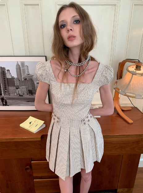 Sweet Puff Sleeve Waist Pleated Birthday Short Skirt Homecoming Dress cc3900