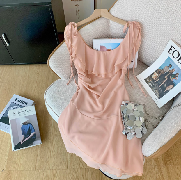 Sweet Ruffled Large U-neck Chiffon 17th Birthday Homecoming Dress cc3968