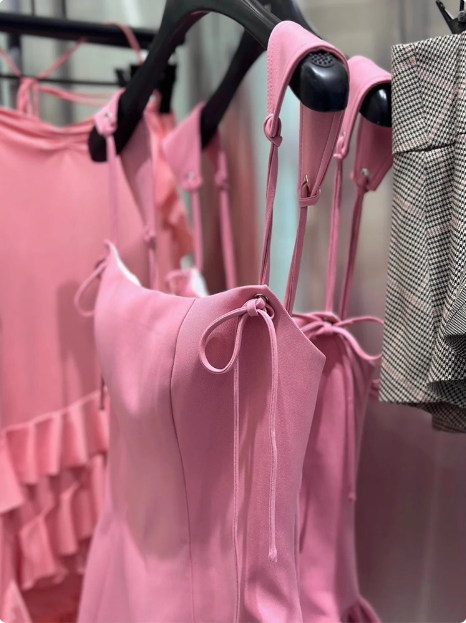 Sweet Suspender Bow Pink Waist A-line Birthday Skirt Homecoming Dress cc3907