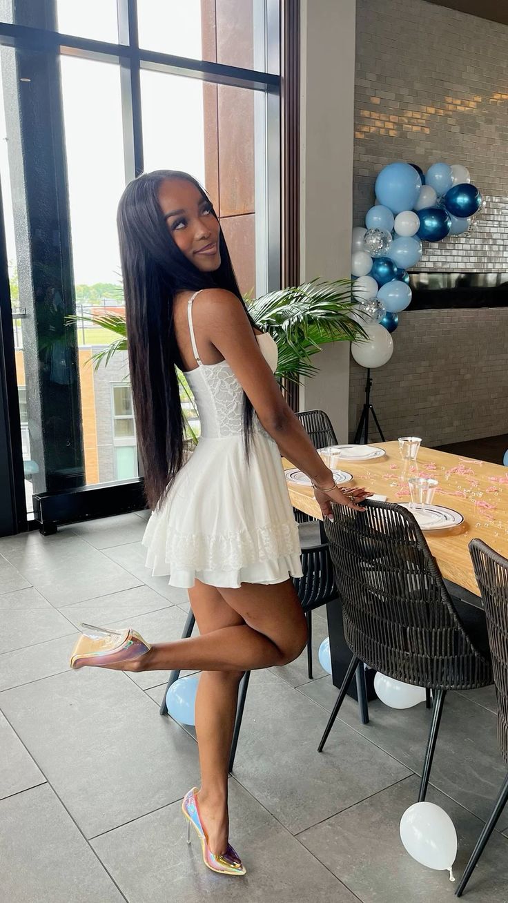 Sweet White Suspender Herringbone A-line 17th Birthday Homecoming Dress cc3705