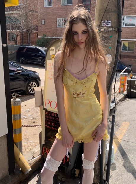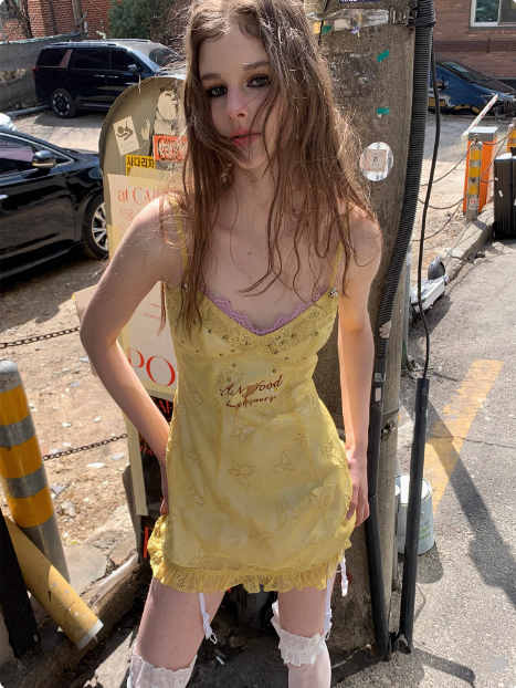 Vintage Yellow Bow Embroidered Waist Suspenders 17th Birthday Homecoming Dress cc3883