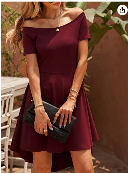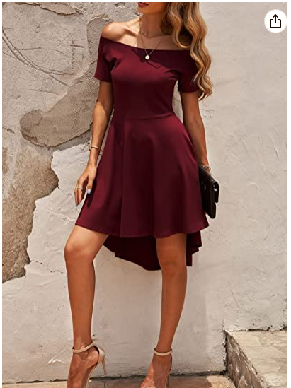 Women Off The Shoulder Short Sleeve High Low Hem Club Cocktail Skater Dress c2678